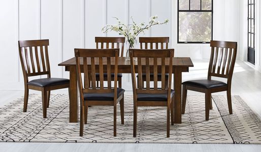 The A-America® Mariposa rustic whiskey dining table is built from solid hardwood for strength and durability. It features a spacious top ideal for family meals or gatherings and includes an 18-inch butterfly leaf for easy extension. The warm finish enhances the natural wood grain.Read More