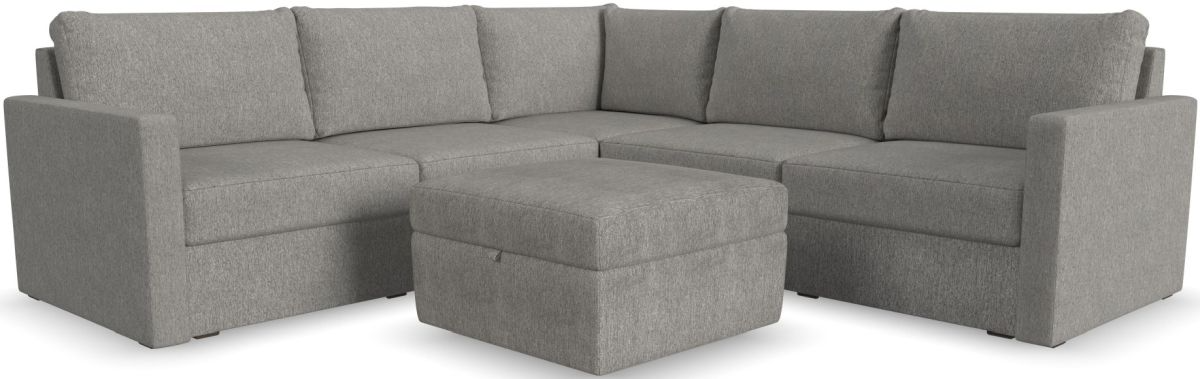 The Flex 6-seat sectional with storage ottoman can easily contract or expand as your needs change. Use the ottoman as a standalone piece or combine with other the other modular components to create the perfect seating configuration for your space. Assembly is a breeze with a patented J-bracket “no-tool” method that takes minutes, rather than hours.
