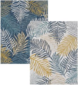 Introducing the Dahlia 1406 Ivory Blue Palms 5'3" x 7' Rug by KAS Rugs. Check all the boxes with bright, durable, and reversible outdoor rugs! Refresh your space anytime with just the flip of a rug, getting two looks in one.Read More