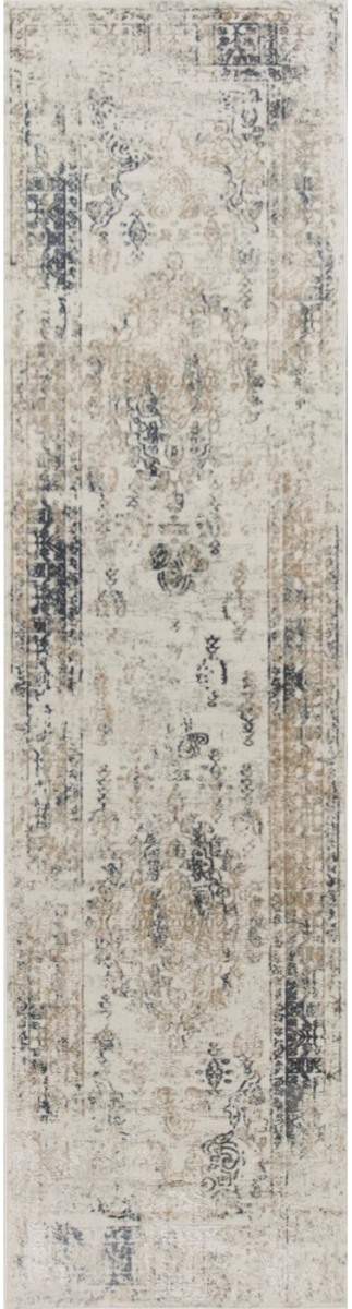 The KAS Generations Beige/Ivory Antiquities 2'2"X 7'11" Runner is machine-woven of polyester and viscose with no backing. Made in Turkey. Vacuum on floor setting only. Spot clean stains with mild soap and water.Read More