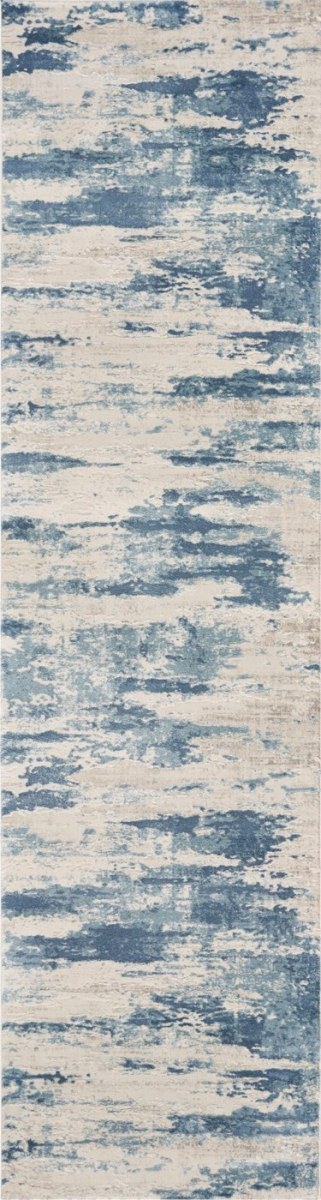 The KAS Generations Blue/Grey Landscape 2'2"X 7'11" Runner is machine-woven of polyester with viscose highlights and no backing. Made in Turkey. Vacuum on floor setting only. Spot clean stains with mild soap and water.Read More