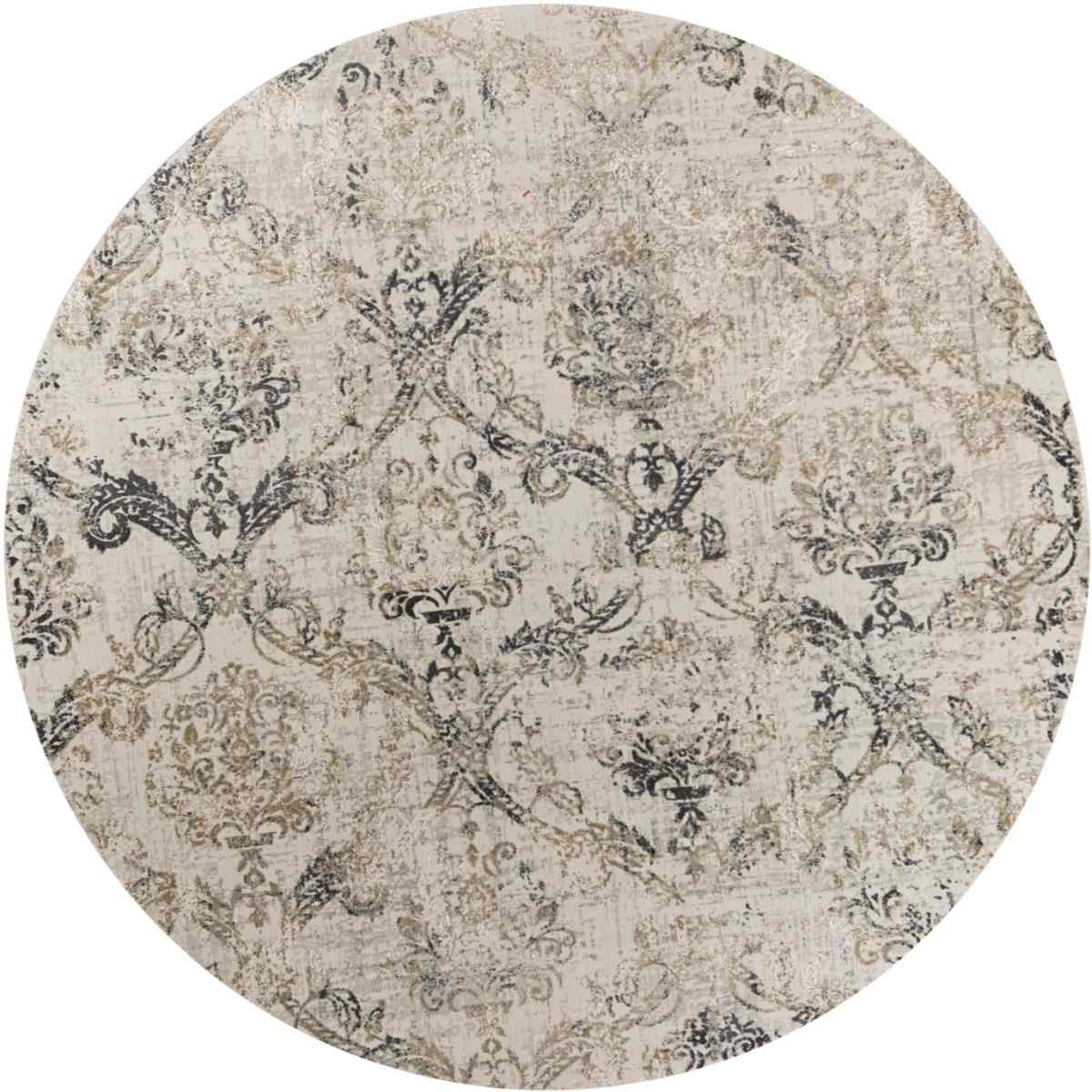 The KAS Generations Pewter Biltmore 7'7" Round Area Rug is machine-woven of polyester and viscose with no backing. Made in Turkey. Vacuum on floor setting only. Spot clean stains with mild soap and water.Read More