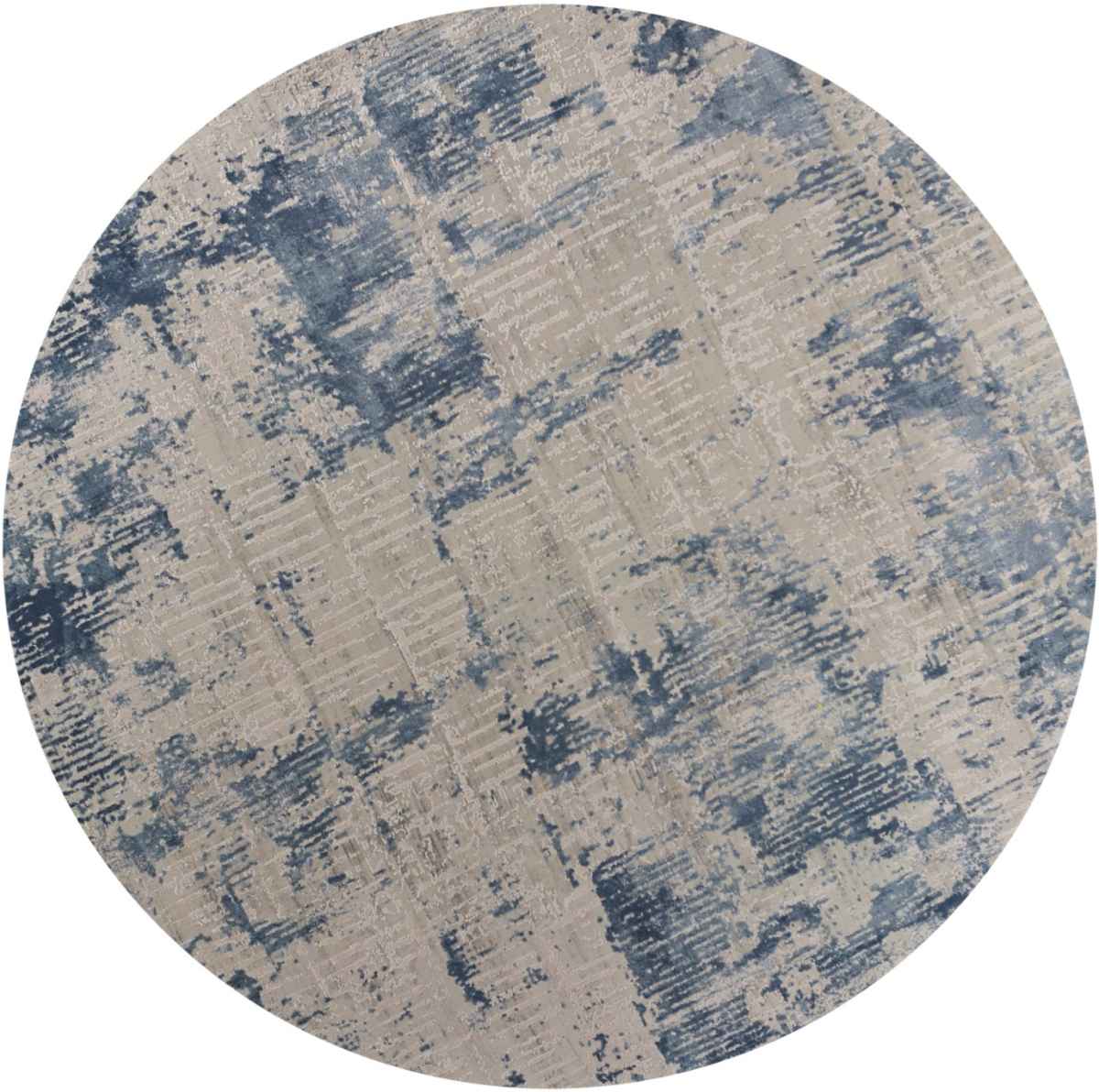 The KAS Generations Blue/Ivory Grace 7'7" Round Area Rug is machine-woven of polyester and viscose with no backing. Made in Turkey. Vacuum on floor setting only. Spot clean stains with mild soap and water.Read More