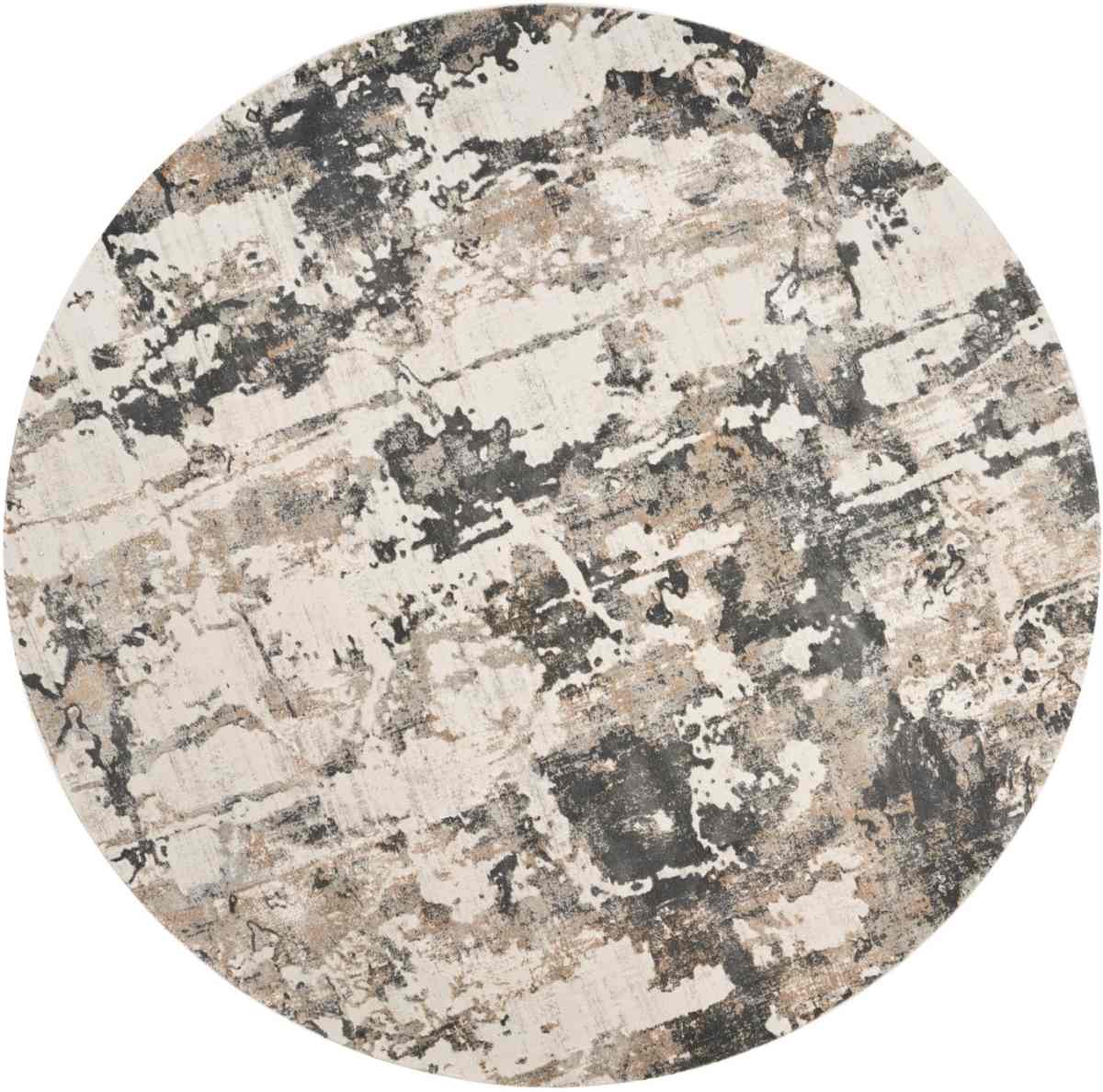 The KAS Generations Grey/Ivory Watercolors 7'7" Round Area Rug is machine-woven of polyester and viscose with no backing. Made in Turkey. Vacuum on floor setting only. Spot clean stains with mild soap and water.Read More