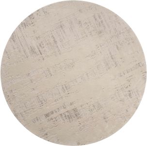 The KAS Generations Silver Watercolors 7'7" Round Area Rug is machine-woven of polyester and viscose with no backing. Made in Turkey. Vacuum on floor setting only. Spot clean stains with mild soap and water.Read More
