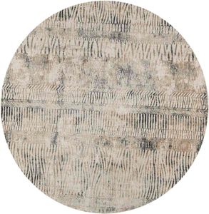The KAS Generations Grey Austin 7'7" Round Area Rug is machine-loomed of polyester and viscose with no backing. Made in Turkey. Vacuum on floor setting only. Spot clean stains with mild soap and water.Read More
