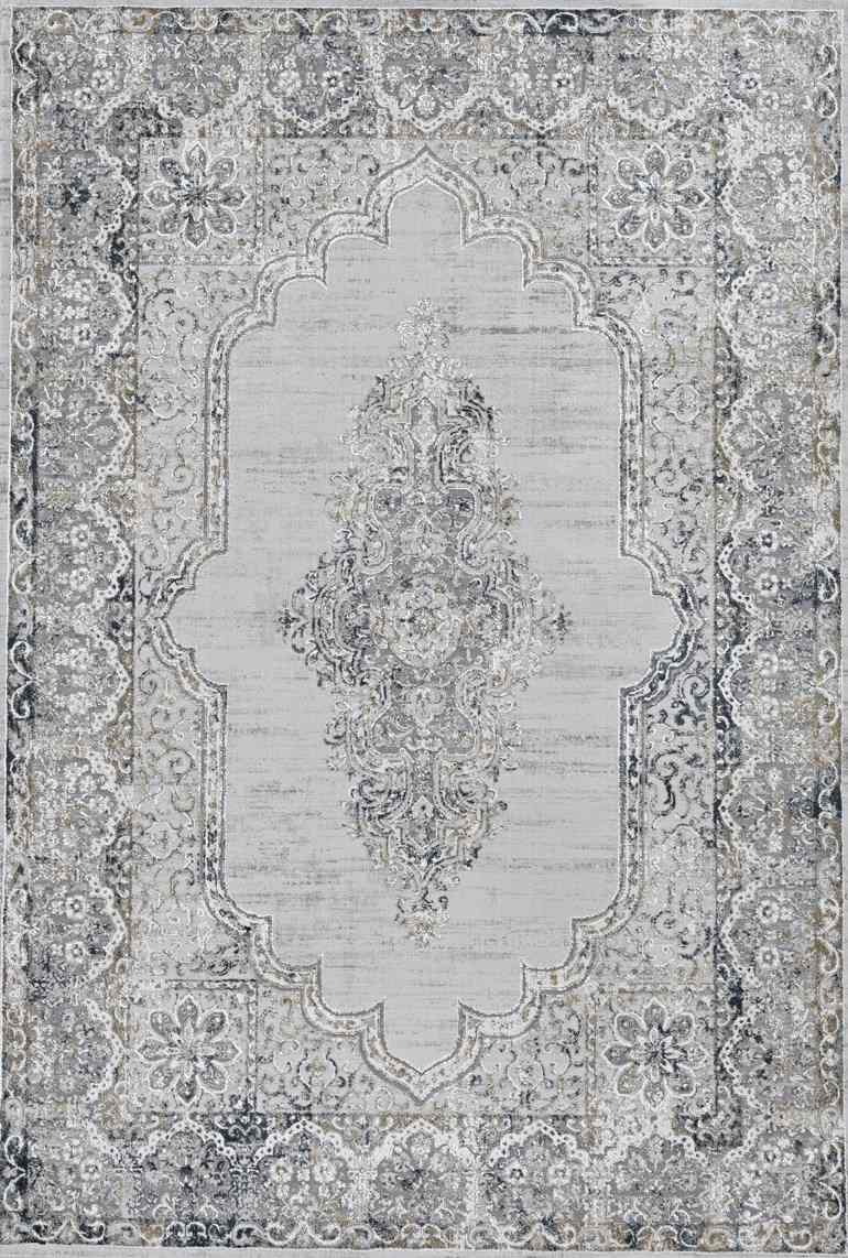 The KAS Generations Ivory Aiden 3'3" x 4'11" Area Rug is machine woven of polyester and viscose with no backing. Made in Turkey. Vacuum on floor setting only. Spot clean stains with mild soap and water.Read More
