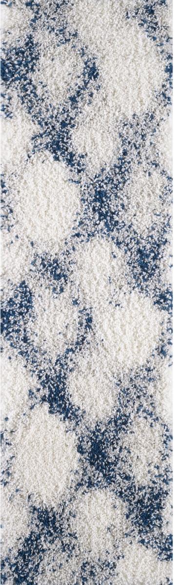 The KAS Phoenix Blue Ivory Diamond 2'2" x 7'7" Runner is machine-woven of polypropylene with no backing. Made in Turkey. Vacuum on floor setting only. Spot clean stains with mild soap and water.Read More