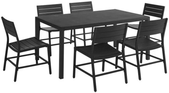 Entertain family and guests in style with this contemporary 7-piece dining set. Featuring a spacious aluminum table and 6 matching chairs, this outdoor ensemble is designed to accommodate large groups and withstand the elements with ease.Read More
