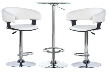 Introduce a modern flair to your gathering space with this swanky 3 piece table set. The plush seat cushions are upholstered in black or white faux leather and matched by curved backs for added comfort and stability.Read More